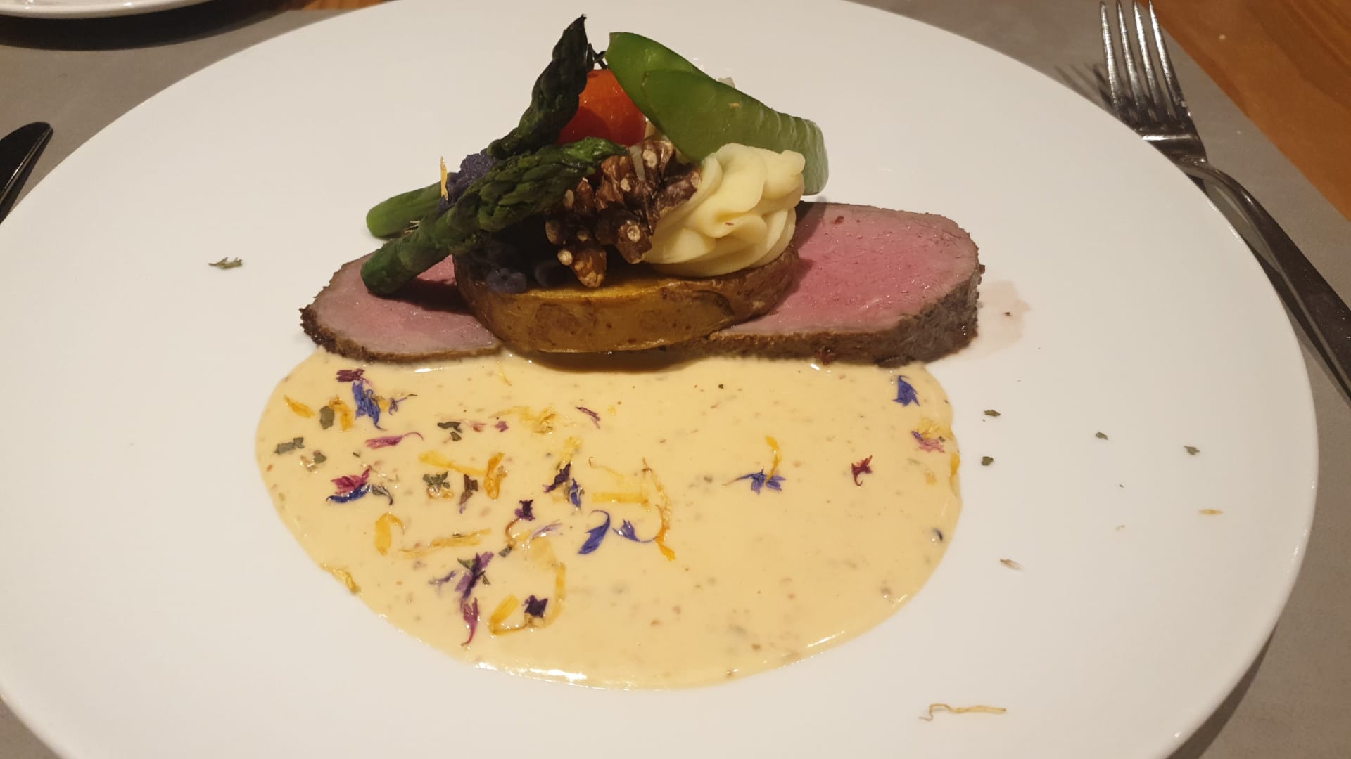 Perfekt gegart aber rest, naja und lauwarm....