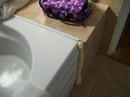 Anstatt einer Dusche wurde eine Badewanne eingebaut. Leider sah man den Bauschaum noch überall.
