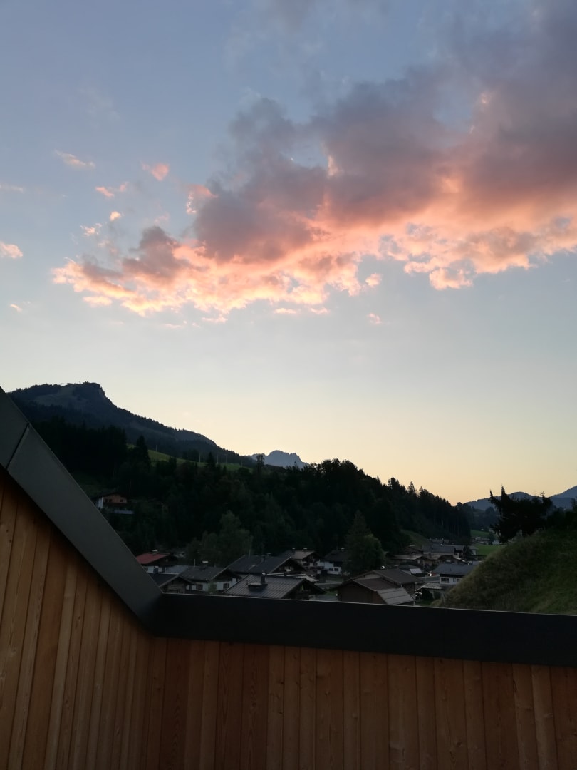 Blick am Morgen vom Dachbalkon in Richtung Sonnenaufgang