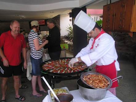 PaellaGab es frisch zubereitet eimal die Woche. Lecker.