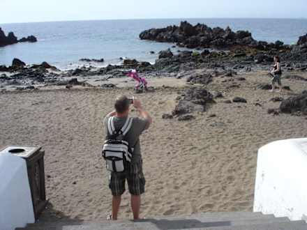 Die kleine Badebucht ist nach etwa 10 Minuten Fußweg zu erreichen. Eine Liege kostet 4 €. Es gibt aber auch genügend Möglichkeiten, sich - auch windgeschützt - in den Sand zu legen.