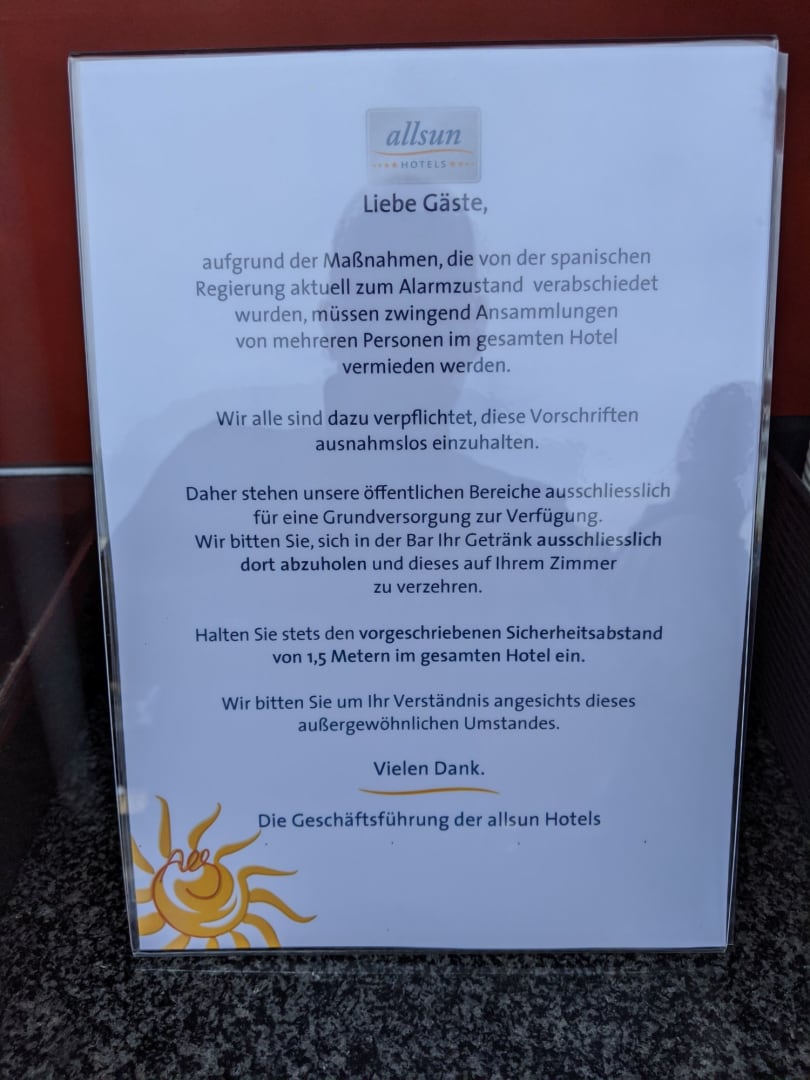 Getränke Konsum nur noch im Zimmer