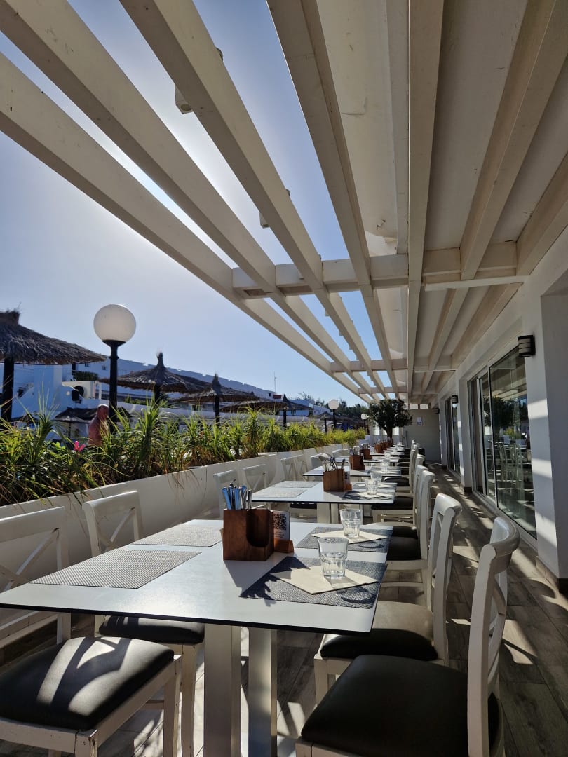 Essen auf der Terrasse bei den Pools ist möglich