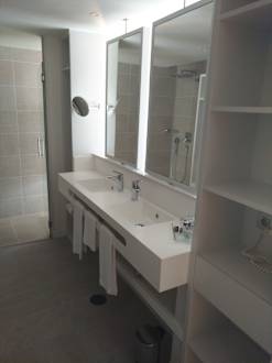 Juniousuite, offene Badezimmer, Doppelwaschbecken