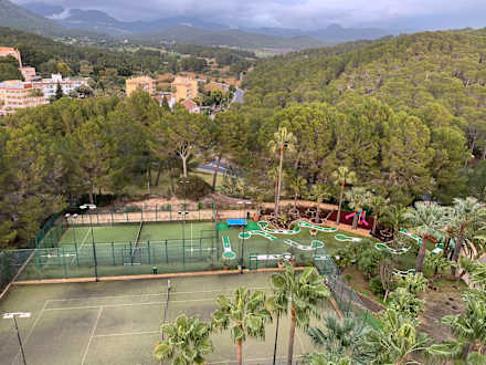 Blick von der Dachterrasse Richtung Nordost Tennisplätze und Minigolf