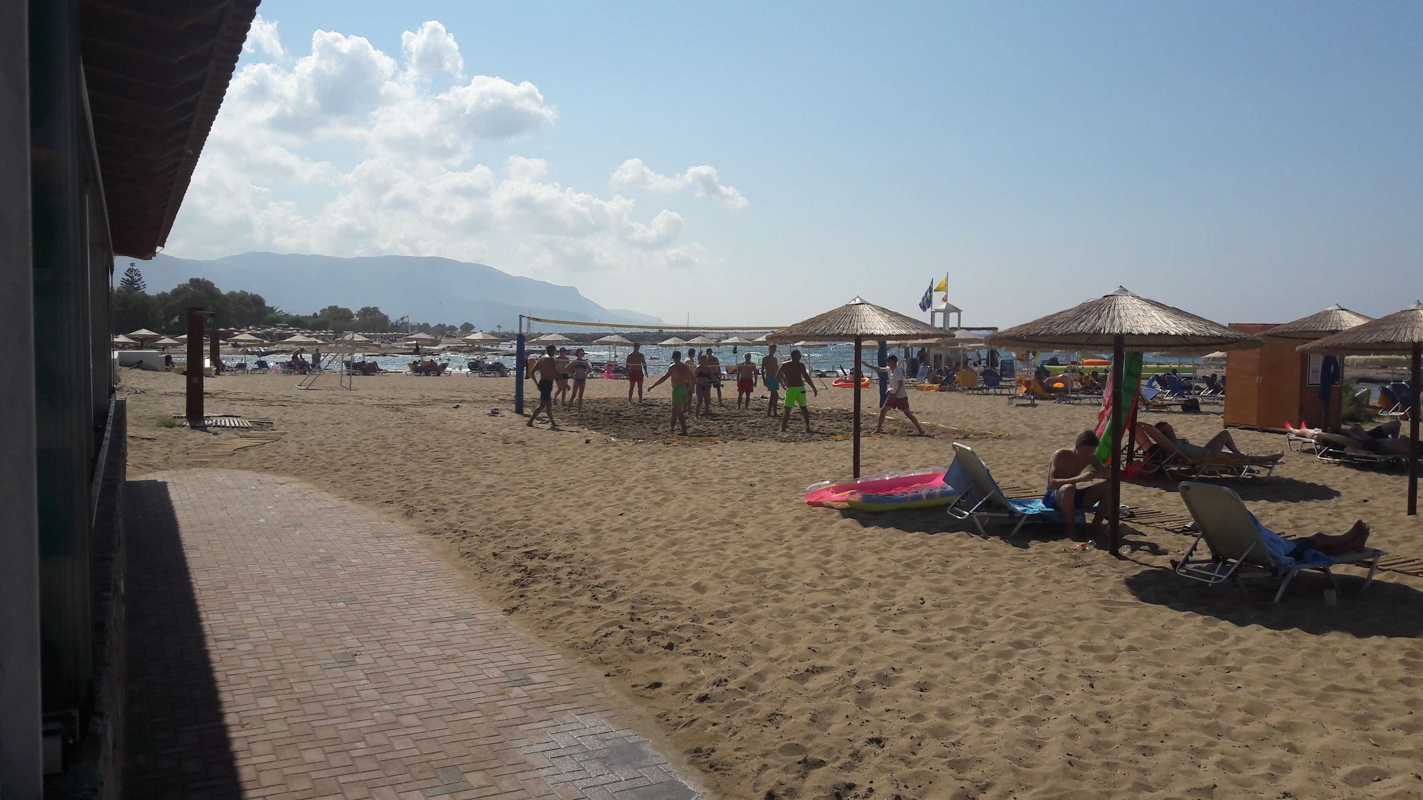 Strand; mit Beachvolleyball-Feld und im Hintergrund Beach-Soccer