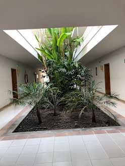 Palmen und Pflanzen und den Hauseingängen
