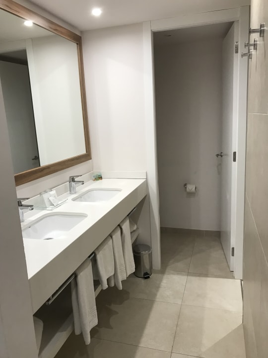 Das Bad ist ordentlich. Es gibt ein Doppelwaschbecken. Die Toilette ist separat :)