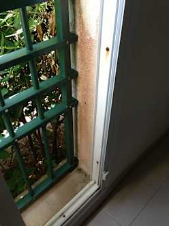 Schimmelige feuchte Balkonwand