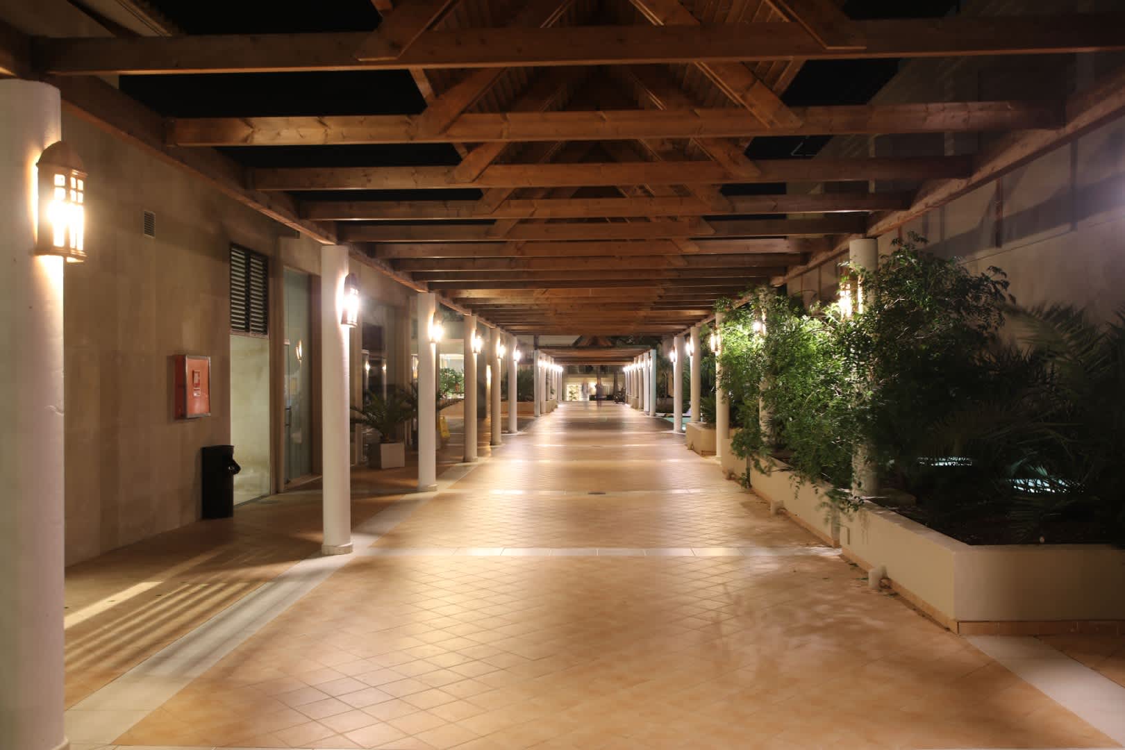 Überdachter Verbindungsgang zwischen Lobby, Bar, Wellness, Fitness, Indoorpool