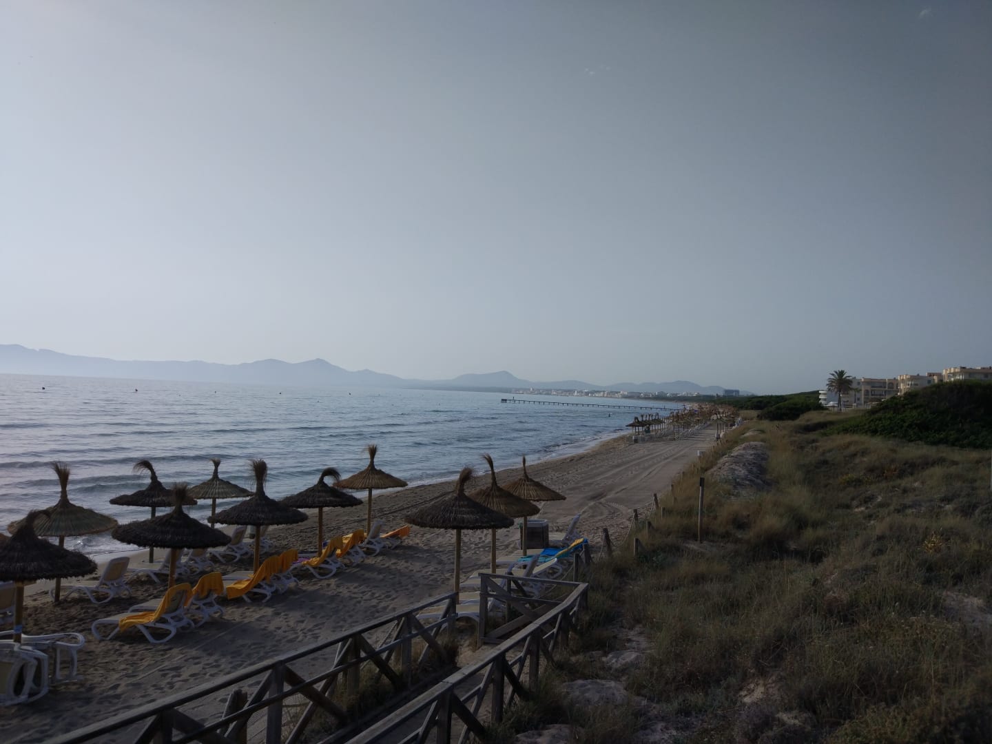 Strand kurz nachdem der Traktor die Anschwemmungen der Nacht beseitigt hat. So ca. 7 Uhr.