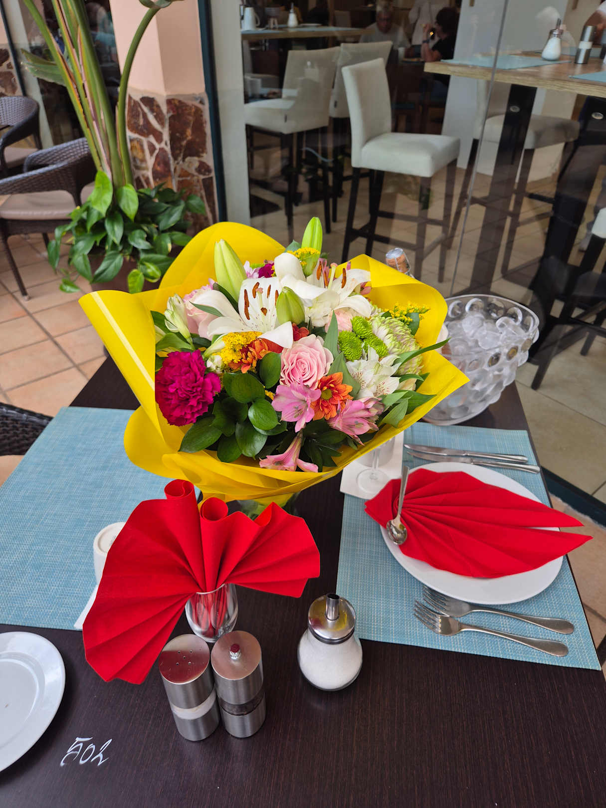 Muttertags-Überraschung (frischer Blumenstrauß, der 1 Woche hielt, und eine Flasche Prosecco-Rosé)