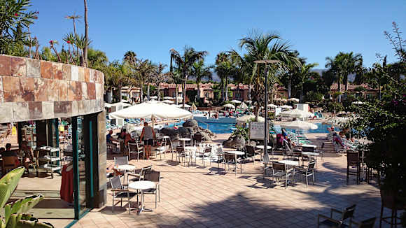 Links die Bar, geradeaus der Pool