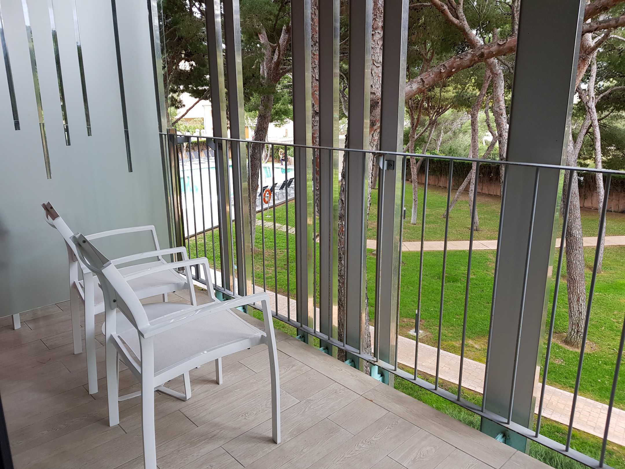 Balkon in der Juniorsuite mit Blick auf den Ruhepool