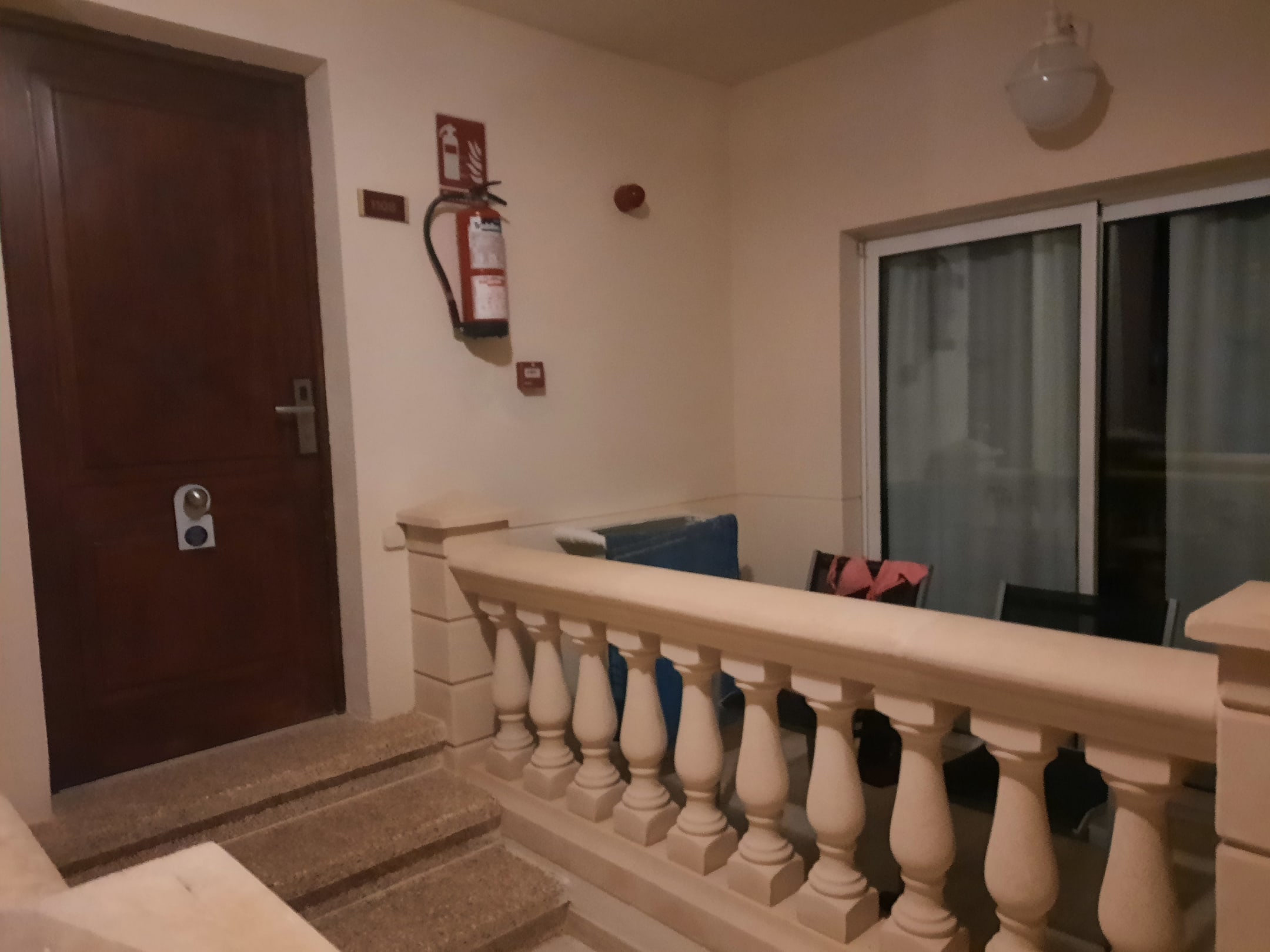 Links unsere Eingangstür, rechts der Balkon der Nachbarn