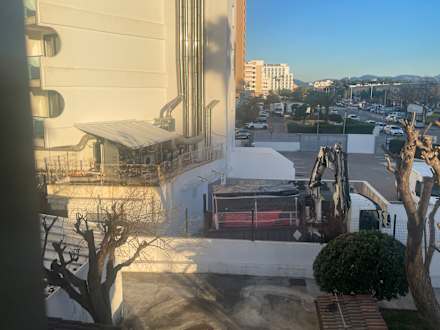 Der Blick aus dem Einzelzimmer auf Kühlaggregate des Nachbathotels die die ganze Zeit liefen