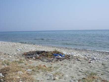 So sieht der Strand unretuschiert aus: Geröll und Müll!