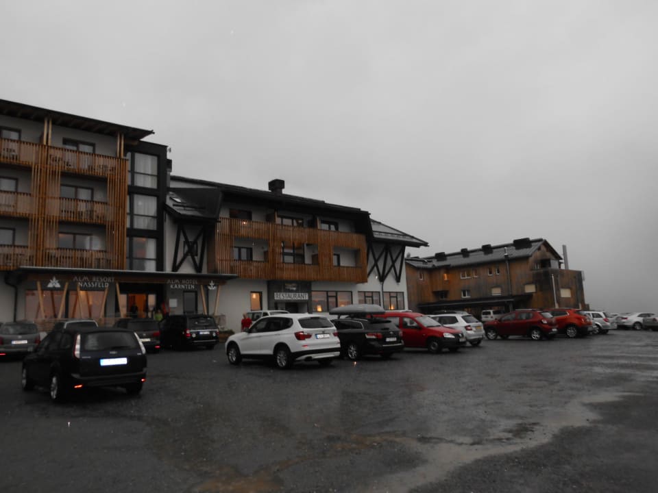 Der Parkplatz vom Almhotel.
