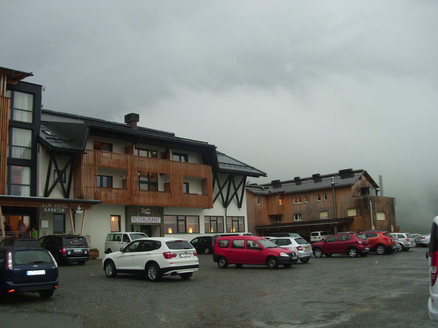 Der Parkplatz vom Almhotel.