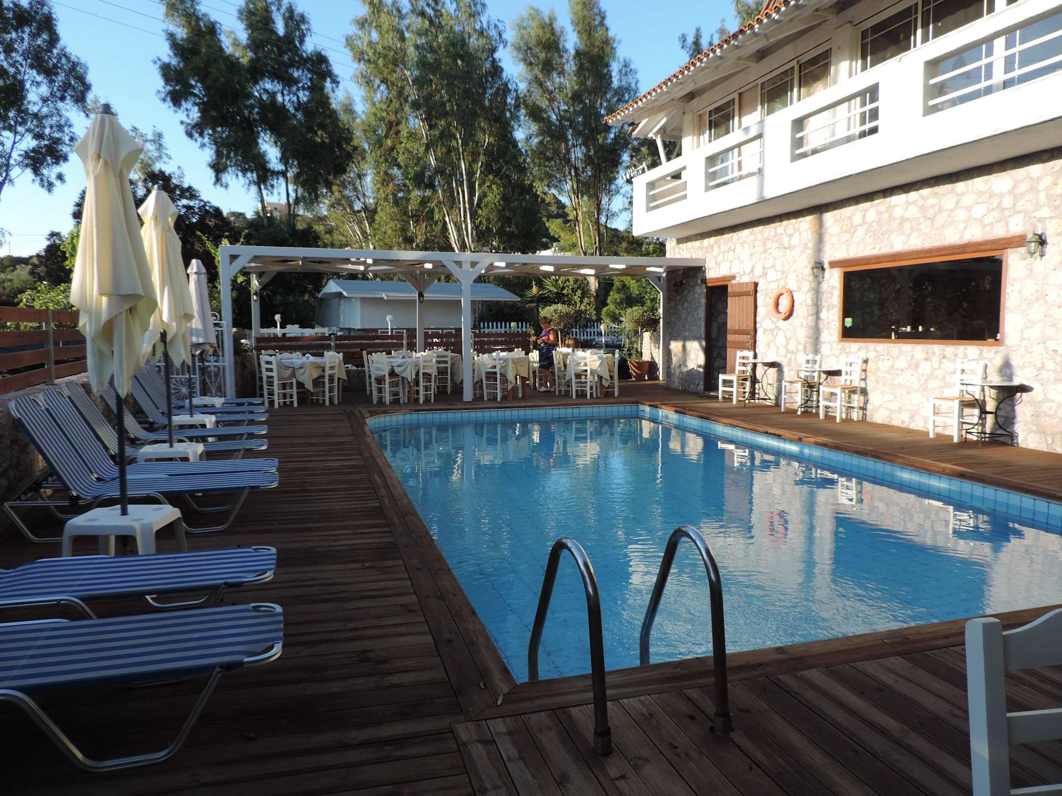 Hotelový bazén s venkovní jídelnou