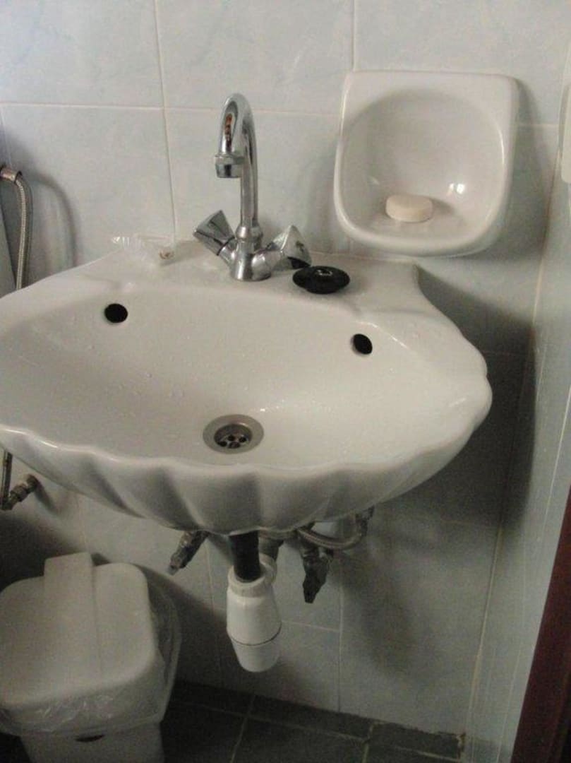 Waschbecken im Badezimmer, ungefährauf Kniehöhe bei 1,70m-Personen