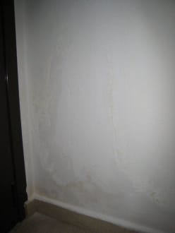 Hier hat man vermutlich nicht nur an Dichtfugen, sondern auch an ausreichender Isolierung der Badezimmerwand gespart. So blüht lecker Schimmel in einem zarten Gelbton in der Küche.