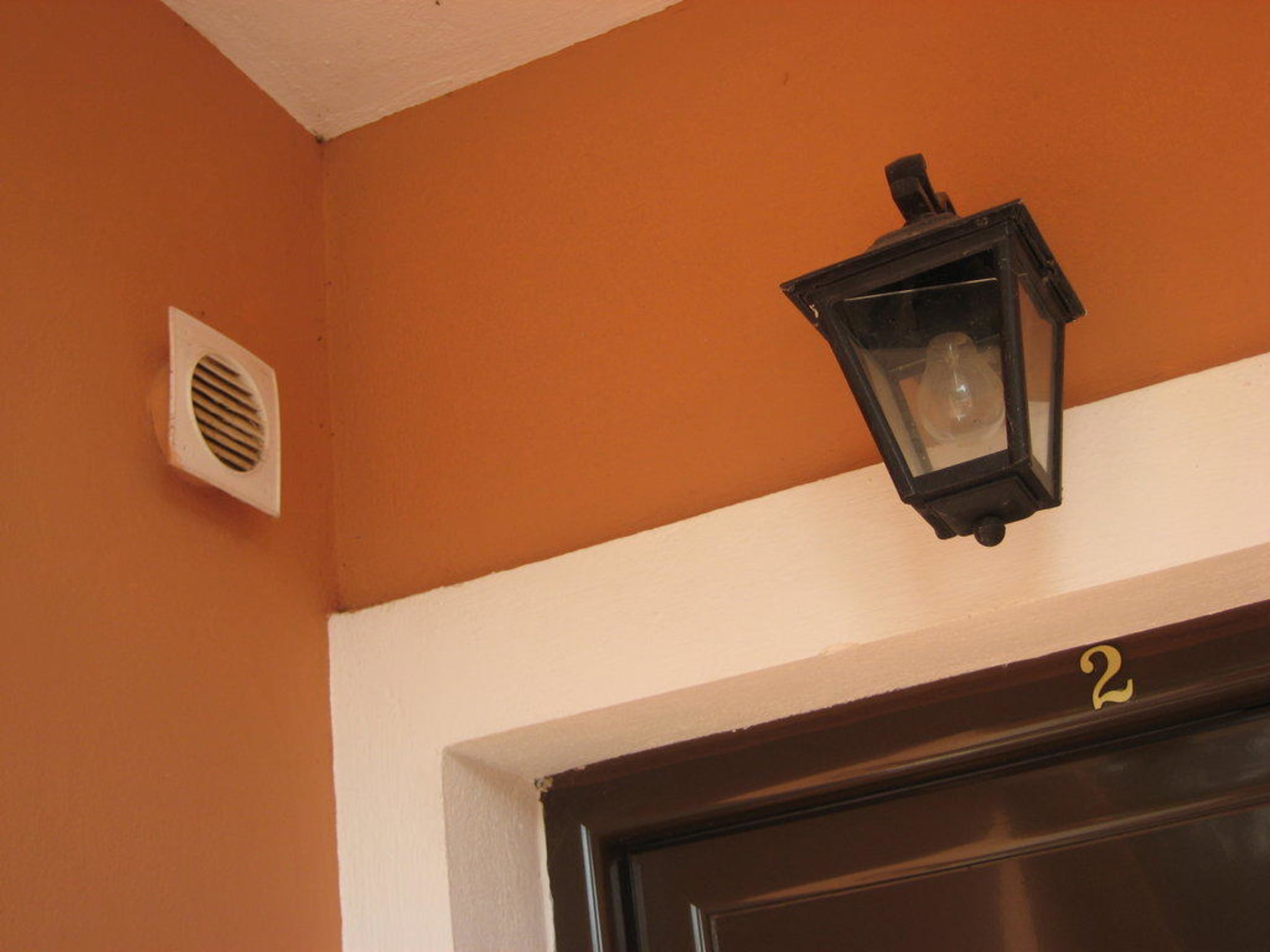 Bad-/Kloentlüftung direkt vors FensterNeben der Badentlüftung des links liegenden, angrenzenden Studios befindet sich eine von zwei Öffnungen unseres Studios, das Küchenfenster. Da riecht es öfter lecker. Das Röhren des Lüfters ist besonders abends und nachts eine Bereicherung.