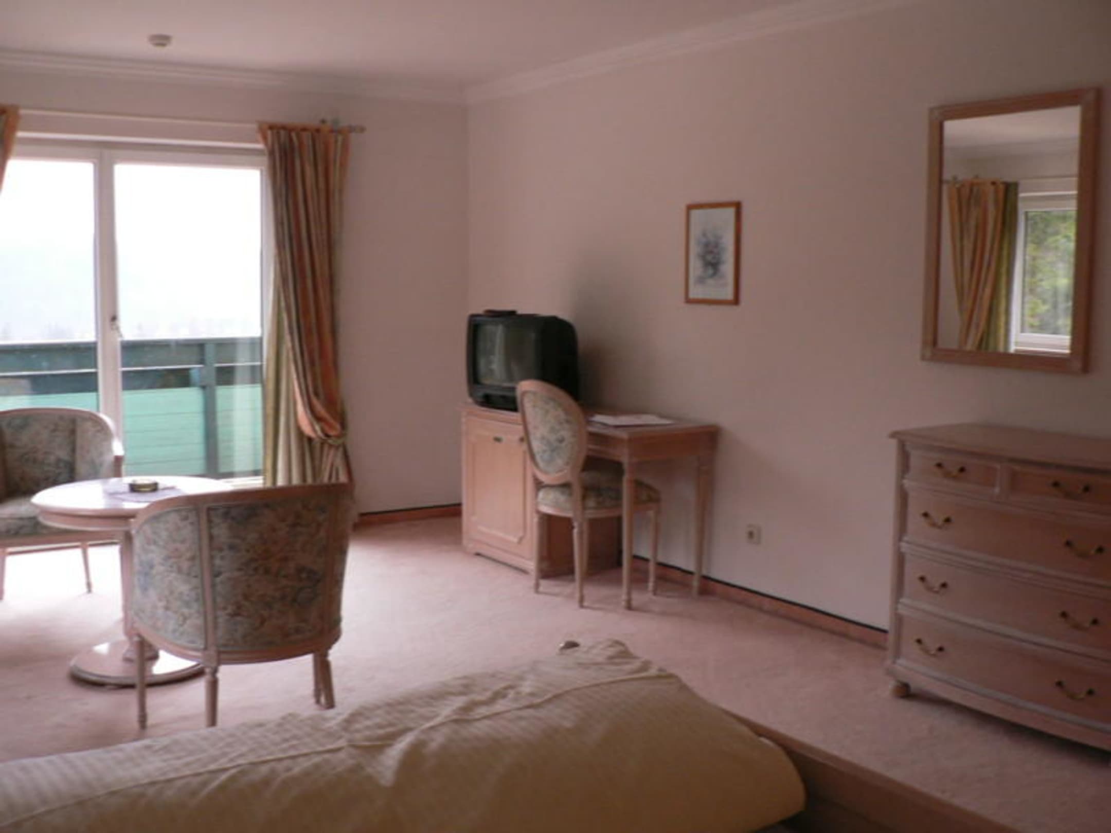 Teilansicht der hellen Suite mit Balkon