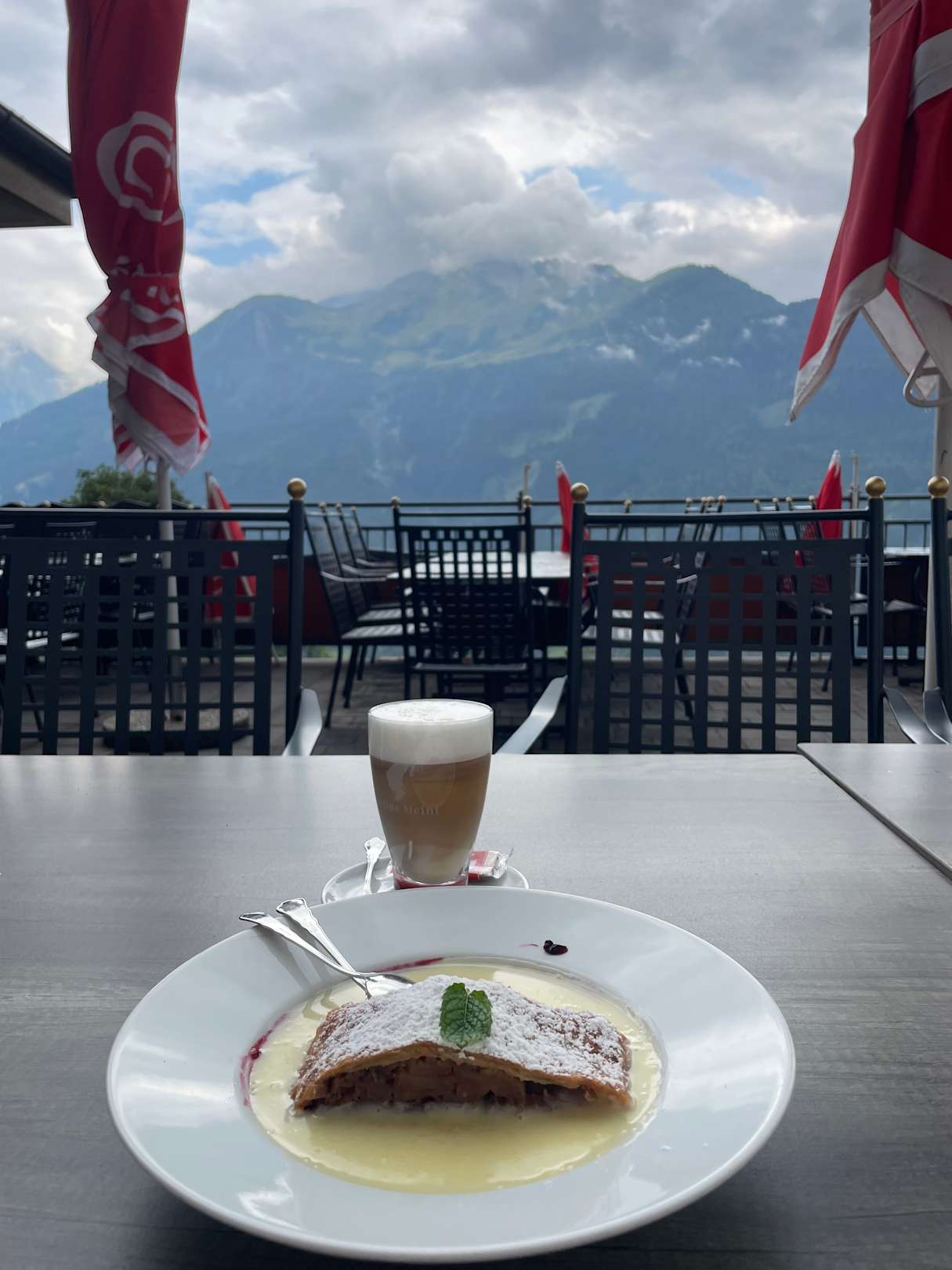 Apfelstrudel mit Vanillesauce und Cappuccino