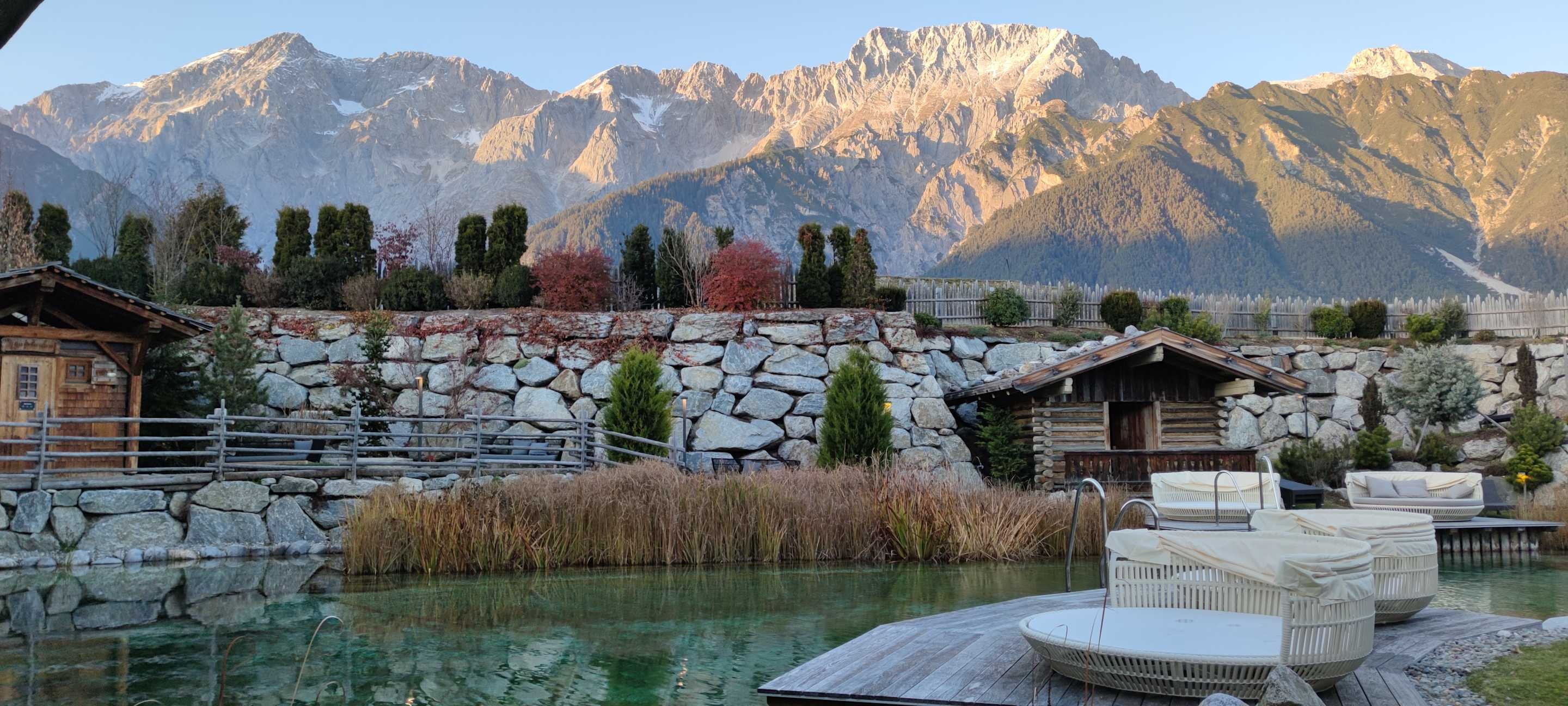 Wellnessbereich außen mit Naturbadesee