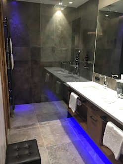 Badezimmer DZ Deluxe „Panorama“ sehr großzügig, mit beleuchtetem Vergrösserungsspiegel 👍🏼