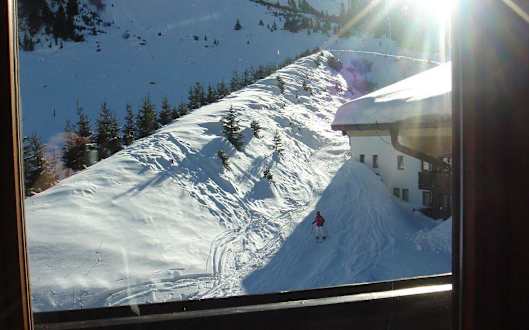 Blick aus dem Zimmerfenster auf die Talabfahrt
