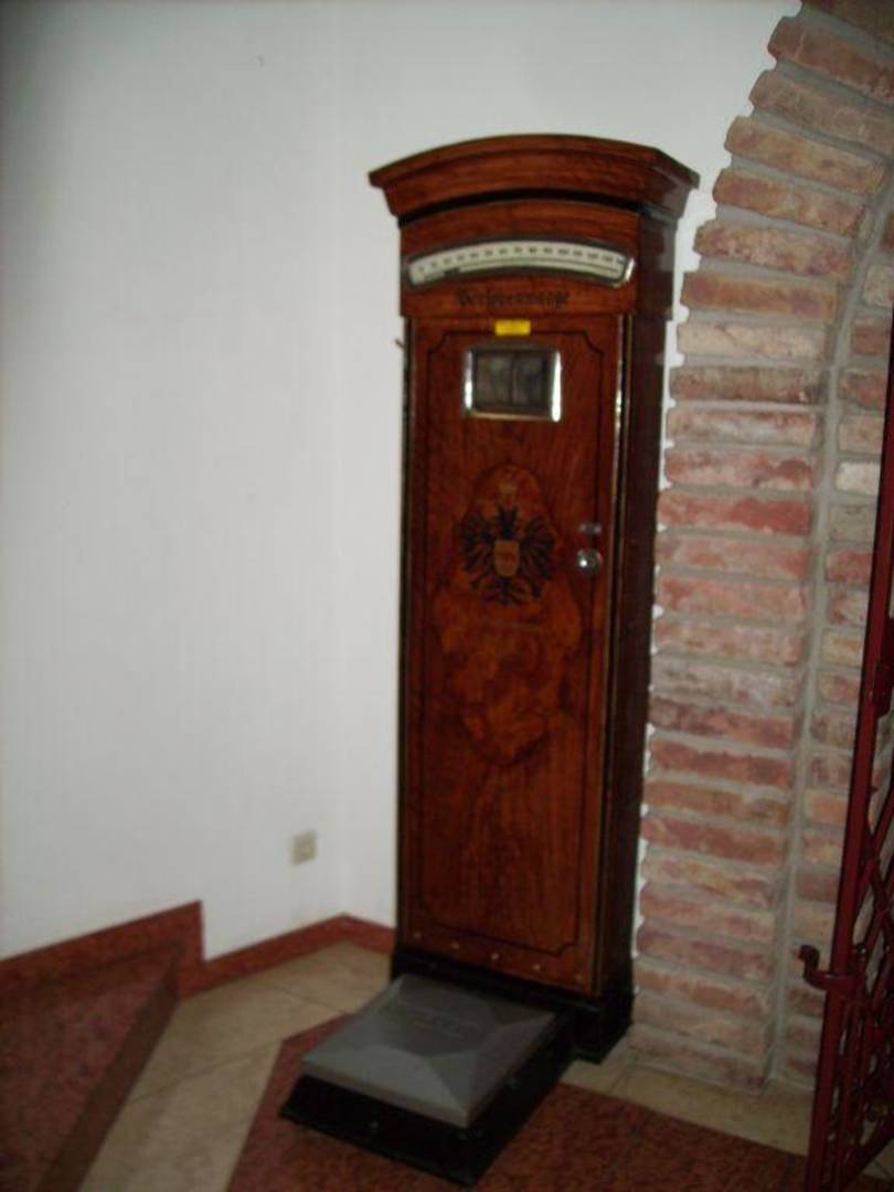 So eine Nostalgie-Waage steht vor dem Weinkeller.