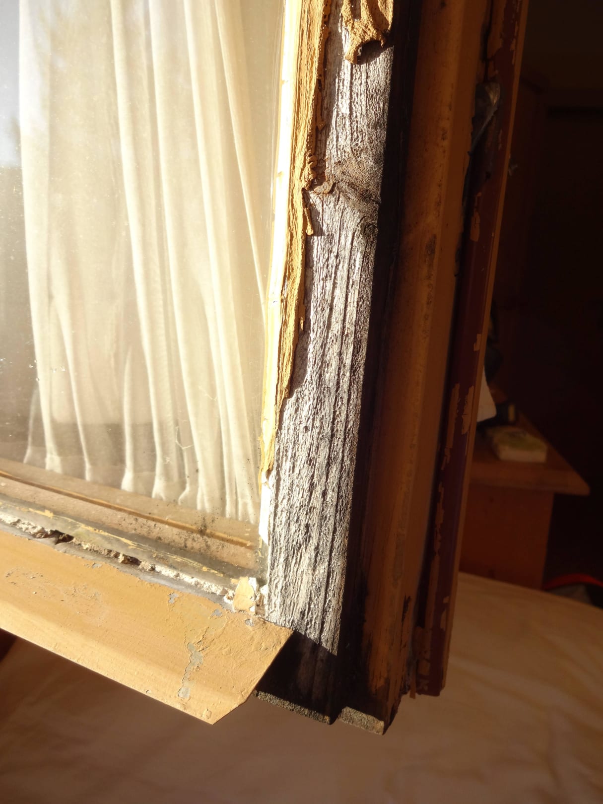 Vermoderdes FebsterDie Fenster haben schon viele Jahre keine Farbe gesehen, schließen schlecht und sind teilweise stark vermodert.
