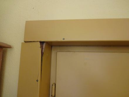 Defekter TürstockWenn man kräftig gegen die Tür drückt, so könnte man auch ohne Türöffnerkarte durch die instabile Tür laufen.