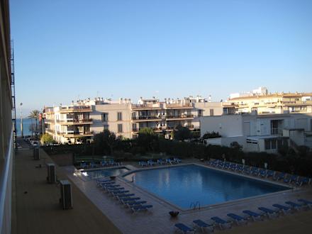 Aus unserem Zimmer zum Garten mit Pool