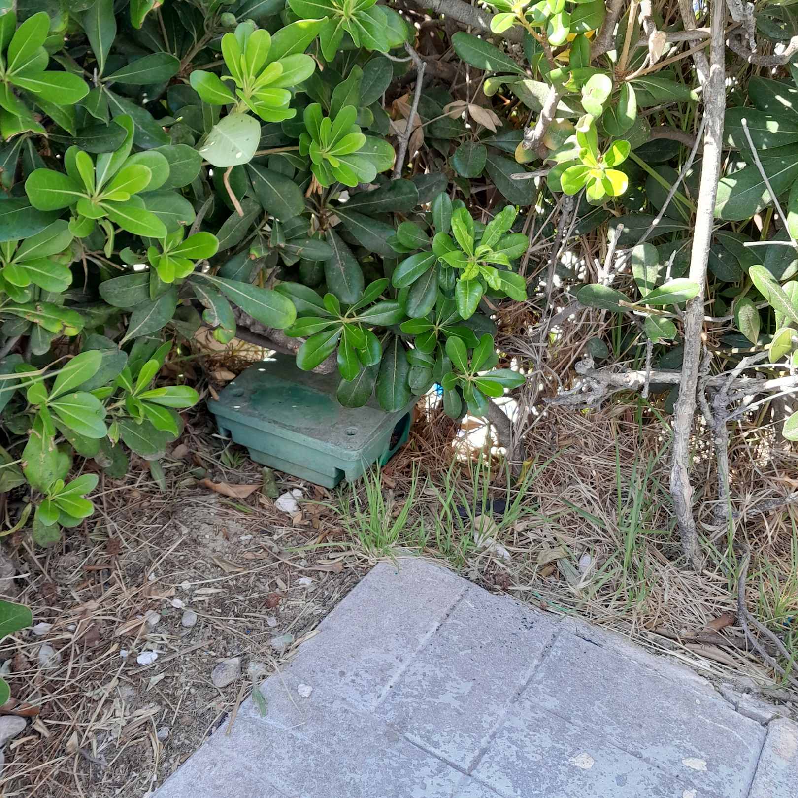 GartenanlageMausefalle direkt vor unserer Terrasse - unter der eh unnötigen Hecke, die den Meerblick beeinträchtigte.