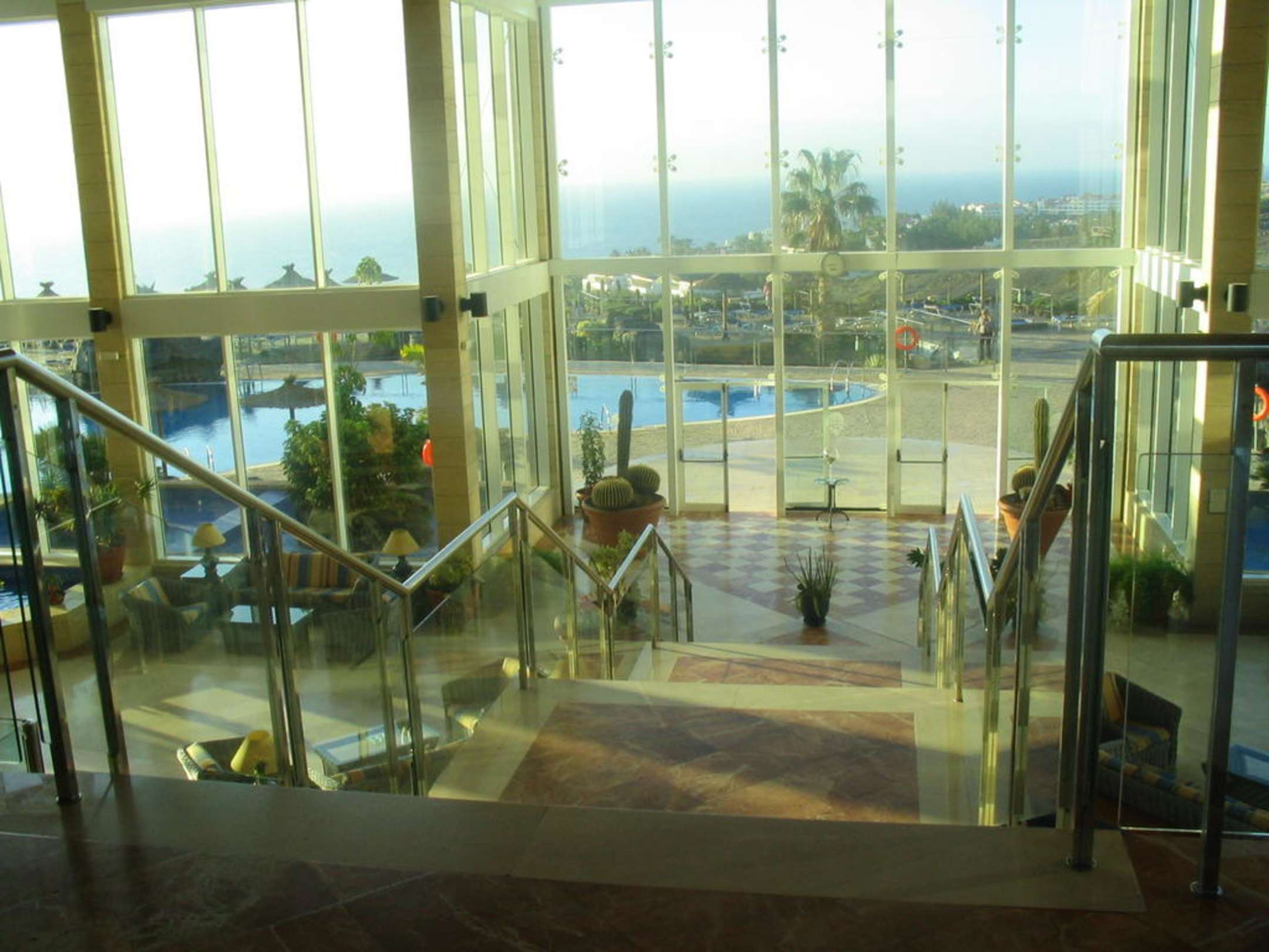 Lobby mit toller Aussicht auf Pool und Meer