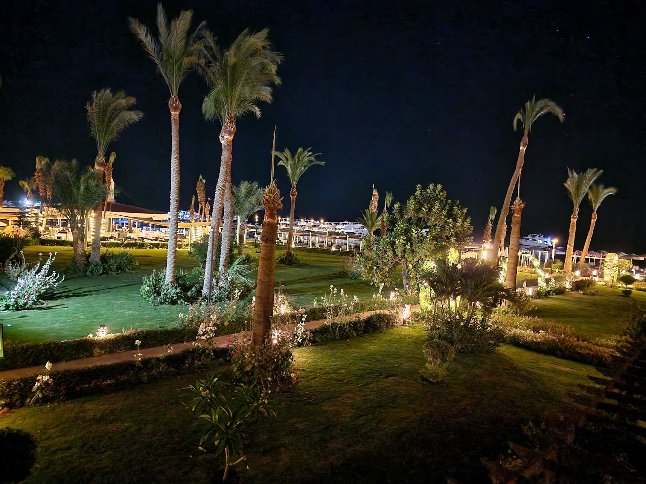 Gartenanlage bei Nacht sehr schön.