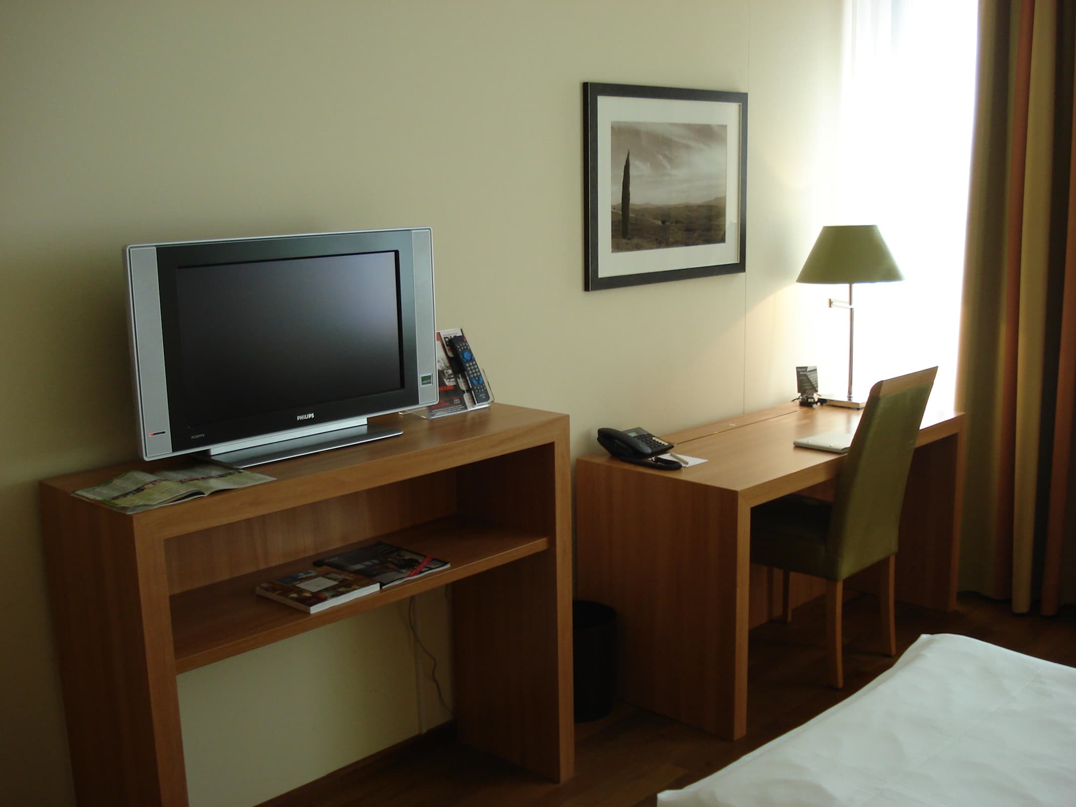 Schreibtisch mit Internetanschluß und Flachbild-TV