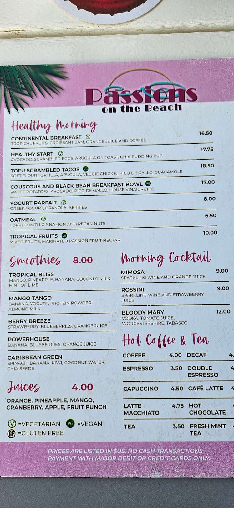 Karte Frühstück an der Strandbar