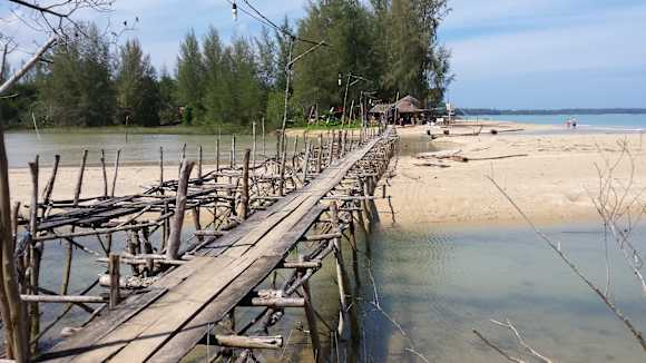 Brücke über den Fluss zu einigen Restaurant