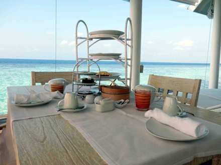 Frühstück auf dem Wasserbungalow