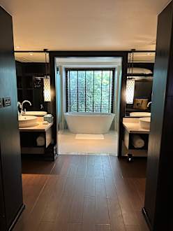 Junior suite garden view, Nr. 123, mit freistehender Badewanne.