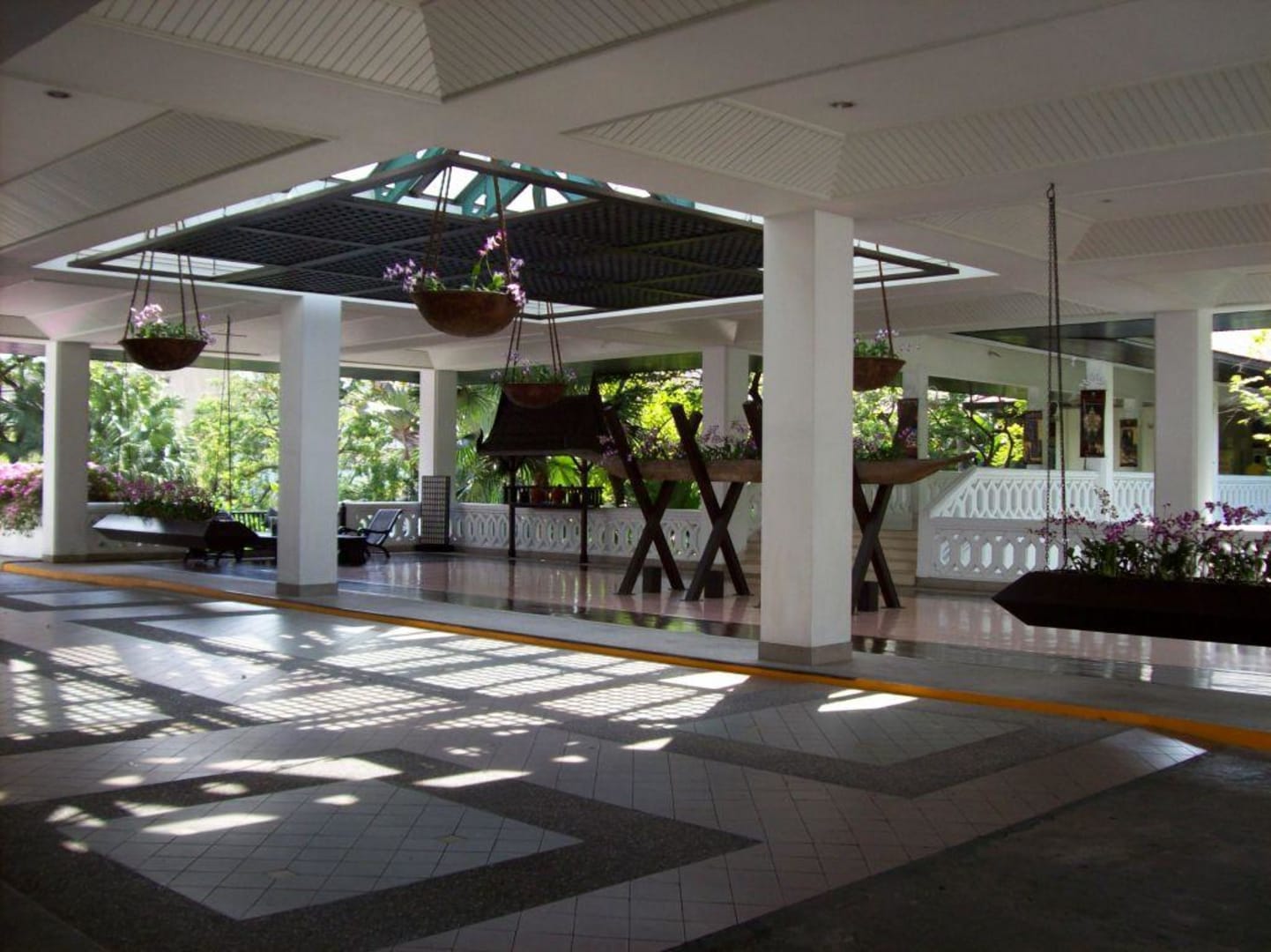 Zufahrt zum Hotel mit schöner Sitzgelegenheit
