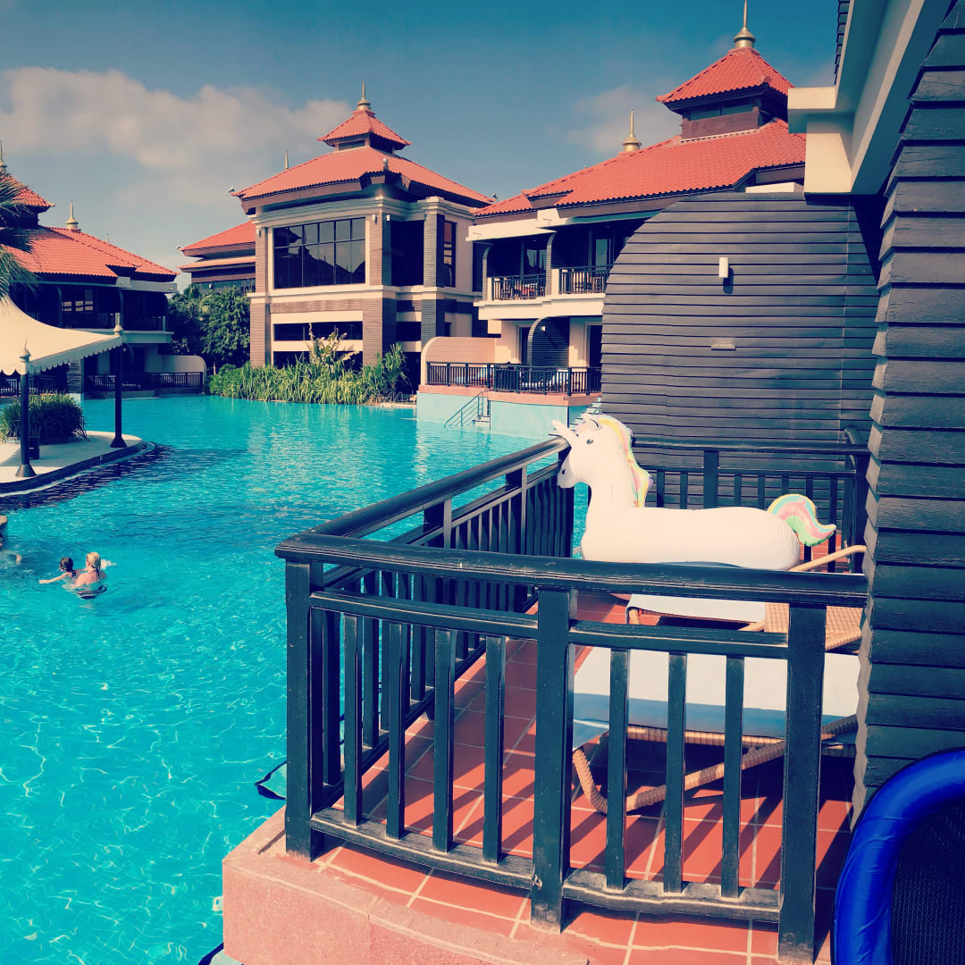 Blick von der Terrasse eines Zimmers mit Lagunenzugang