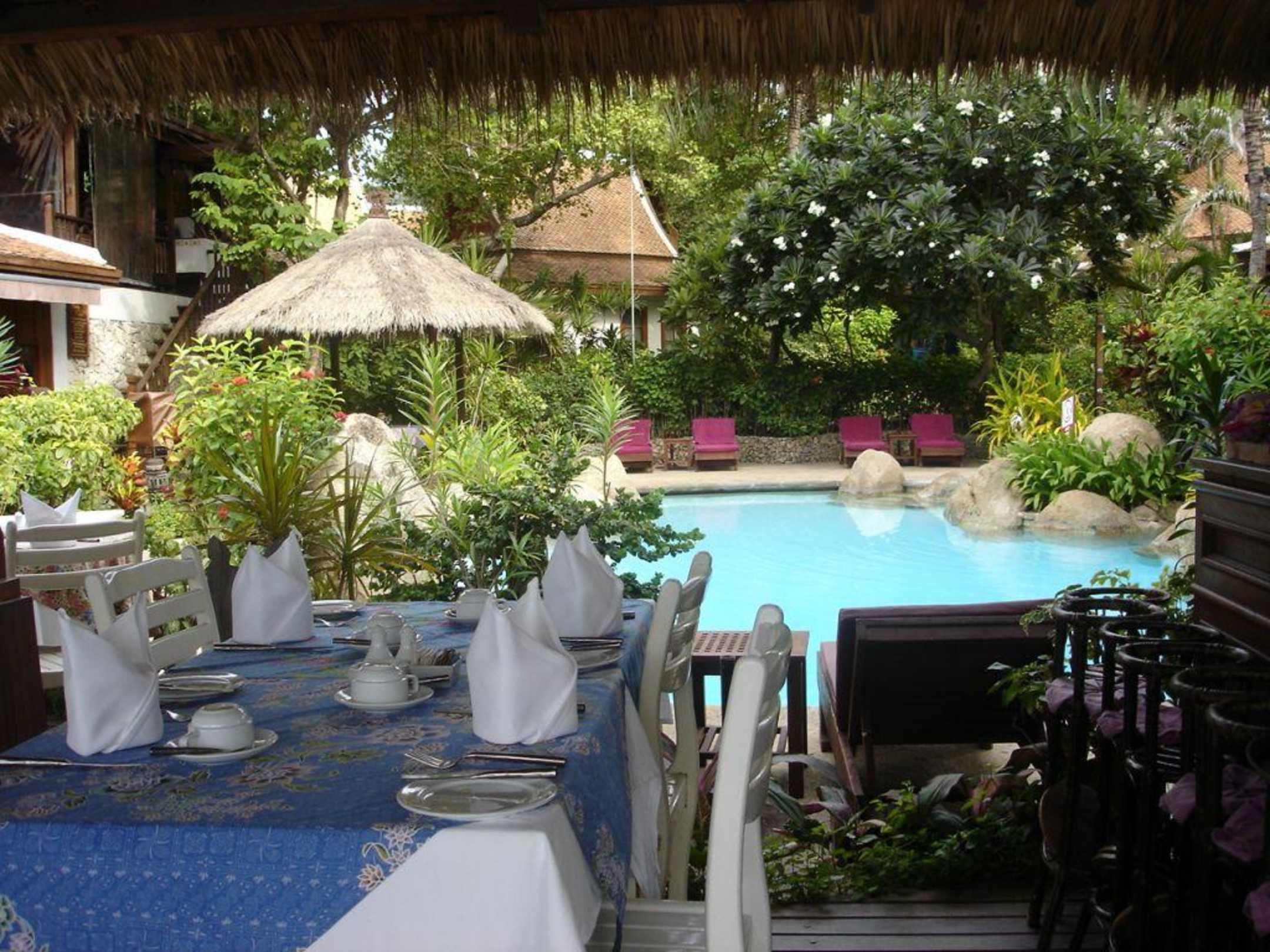 RestaurantDas Frühstück wird auf der Terasse am Pool oberhalb des Strandes eingenommen.