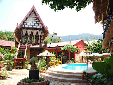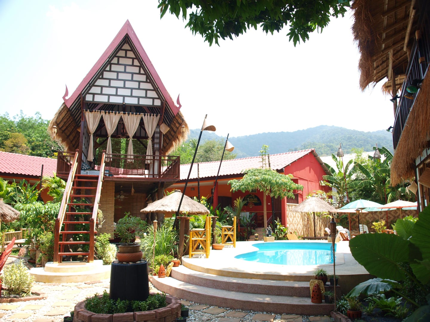 Blick auf Pool und Chill out Bereich