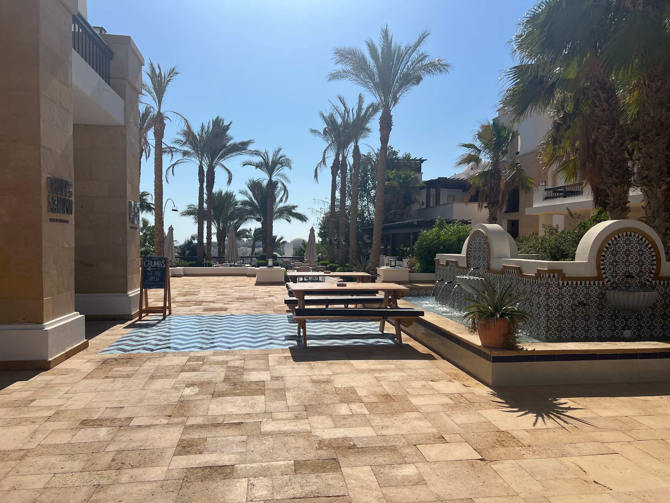 Ausblick bei crumbs Café in einem Innenhof vom Hotel