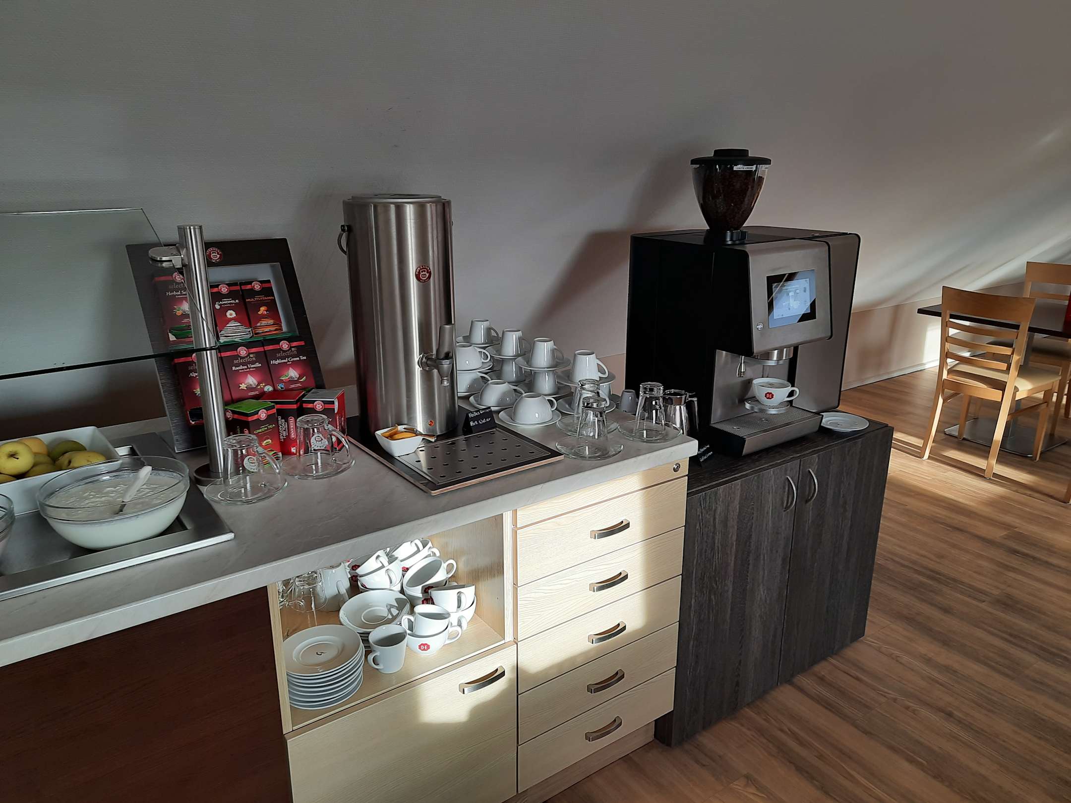 Highlight des Hotels. Ein klasse Kaffeevollautomat für verschiedene Kaffeearten.